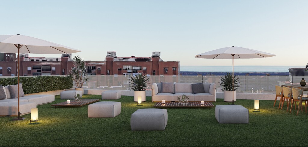 Erdgeschoss, Einbauküche, Parkplatz: Tiefgarage, Gemeinschaftspool, Garten: Gemeinschaft