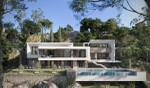 The villa presents a contemporary architecture that works in harmony with the terrain, transforming the natural topography into a defining element of the design.
