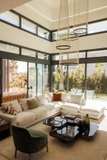 El nivel de planta baja ofrece 3 dormitorios, 2 baños y 1 aseo de invitados, un amplio salón con comedor integrado y una cocina totalmente equipada con encimera, iluminación, mobiliario y electrodomésticos de primera marca y diseño actual: frigorífico, horno, microondas, lavavajillas, lavadora-secadora integrable, fregadero, grifería, placa de inducción y campana. Marca GAGGENAU o similar. El salón tiene el acceso directo al jardín privado y la zona de piscina y zona de barbacoa.